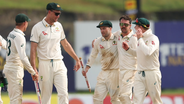 Australia celebrates its first Test win over Sri Lanka. Getty