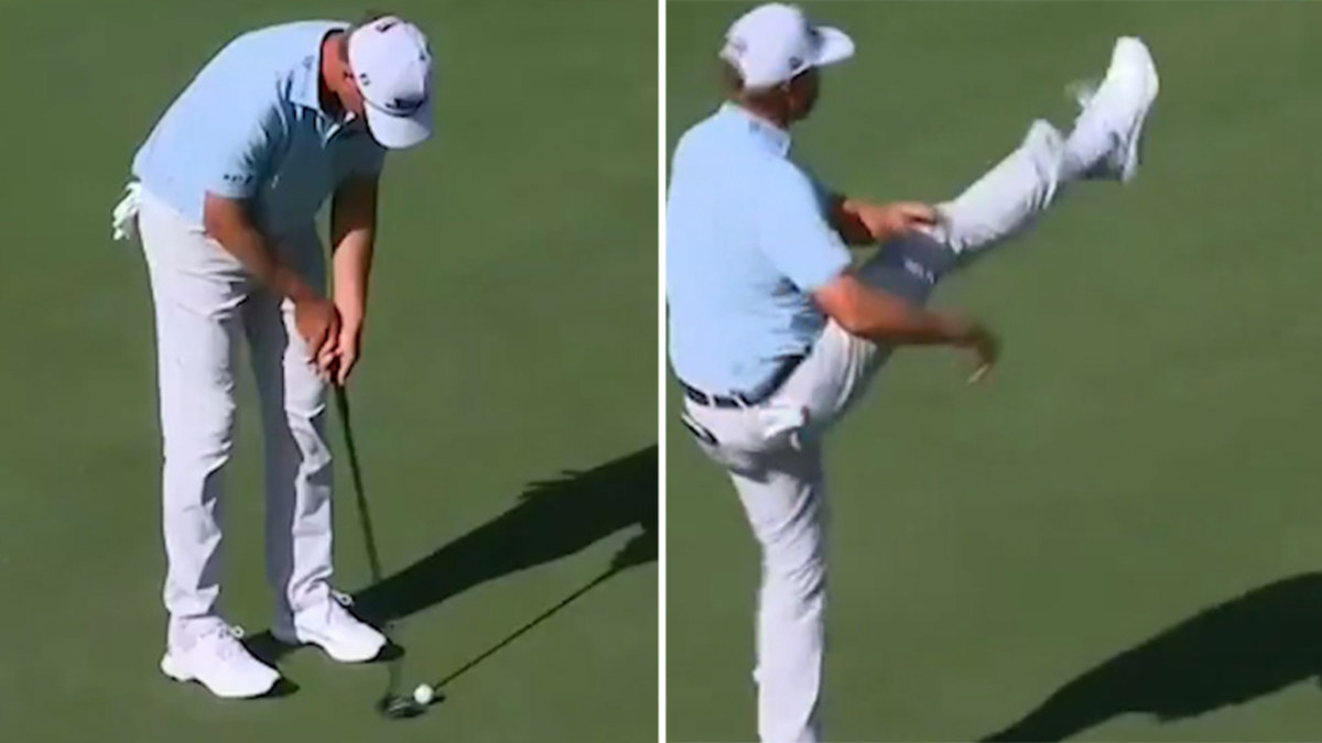 The 39-year-old’s putt veered right of the hole, which led him to angrily launch his putter towards the bunker.
