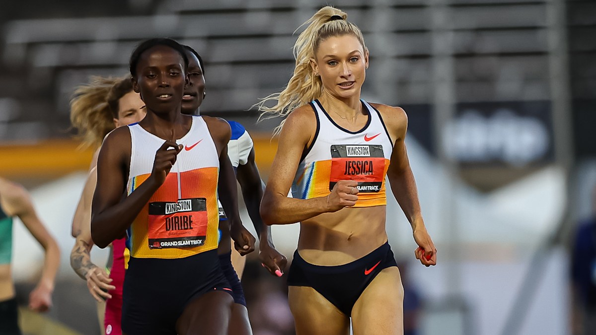 Diribe Welteji and Jessica Hull battling it out in the 1500m. Grand Slam Track