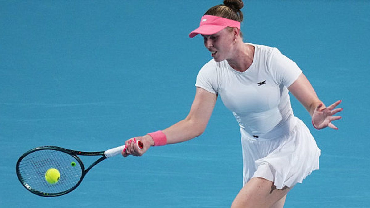 Elena Rybakina returns a shot against Talia Gibson. Getty