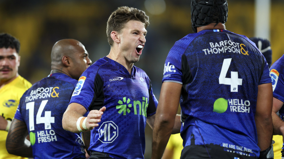 At Sky Stadium, Wellington: Blues 33 (Penalty try 18min, Ricky Riccitelli 26min, Cameron Suafoa 31min, Hoskins Sotutu 68min, Mark Tele’a 70min tries; Beauden Barrett 3 con) Hurricanes 29 (Harry Godfrey 30min, Kini Naholo 60min tries; Godfrey 2 con, 4 pen). HT: 21-19