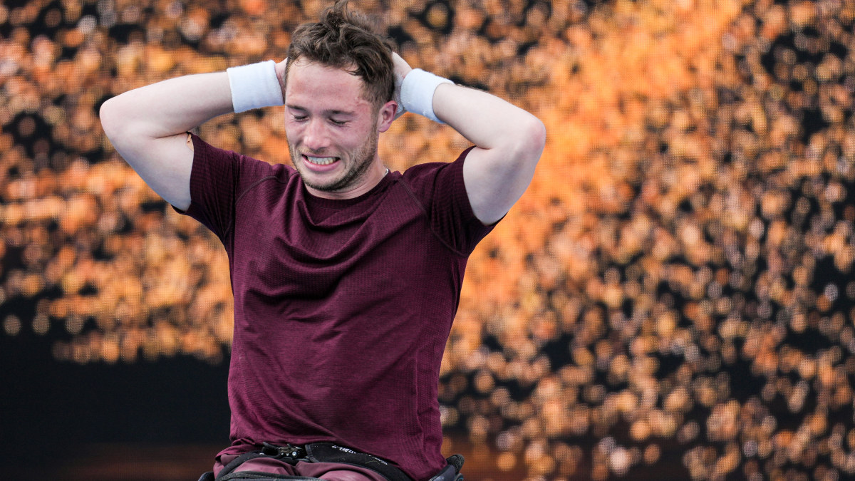 Alfie Hewett of Great Britain celebrates his victory. Getty