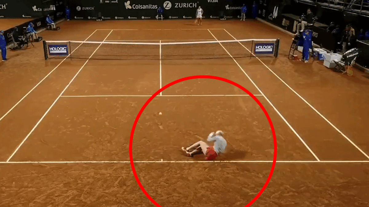 Unfortunately, she was unable to finish her serving motion and fell to the ground, grasping her head.