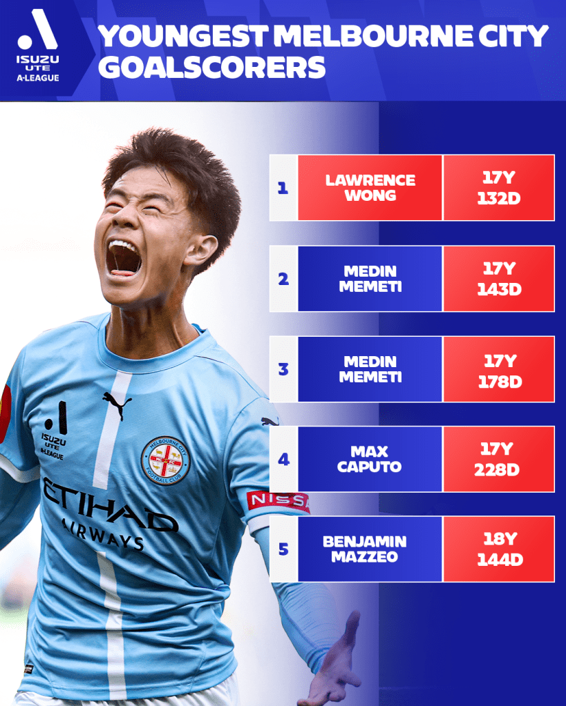 With this achievement, Wong now holds the record as the youngest goalscorer in Melbourne City’s Isuzu UTE A-League history. Remarkably, the five youngest club goalscorers have all been City players since December 2023, all of whom have developed through the academy.
