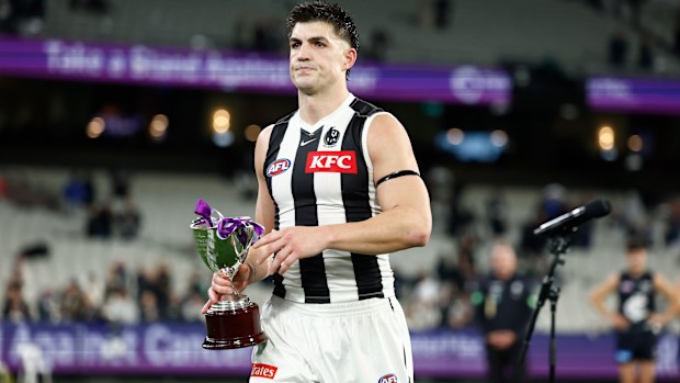 Brayden Maynard after Collingwood’s victory against Carlton. AFL Photos via Getty Images
