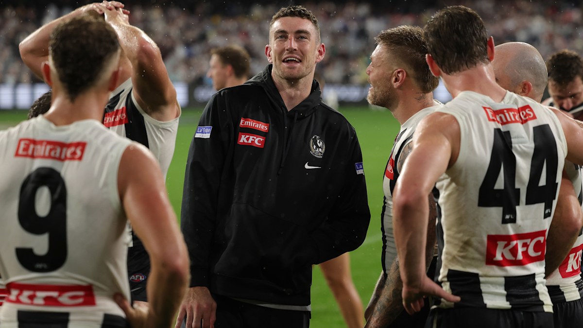 Daniel McStay with his Magpies teammates. AFL Photos via Getty Images