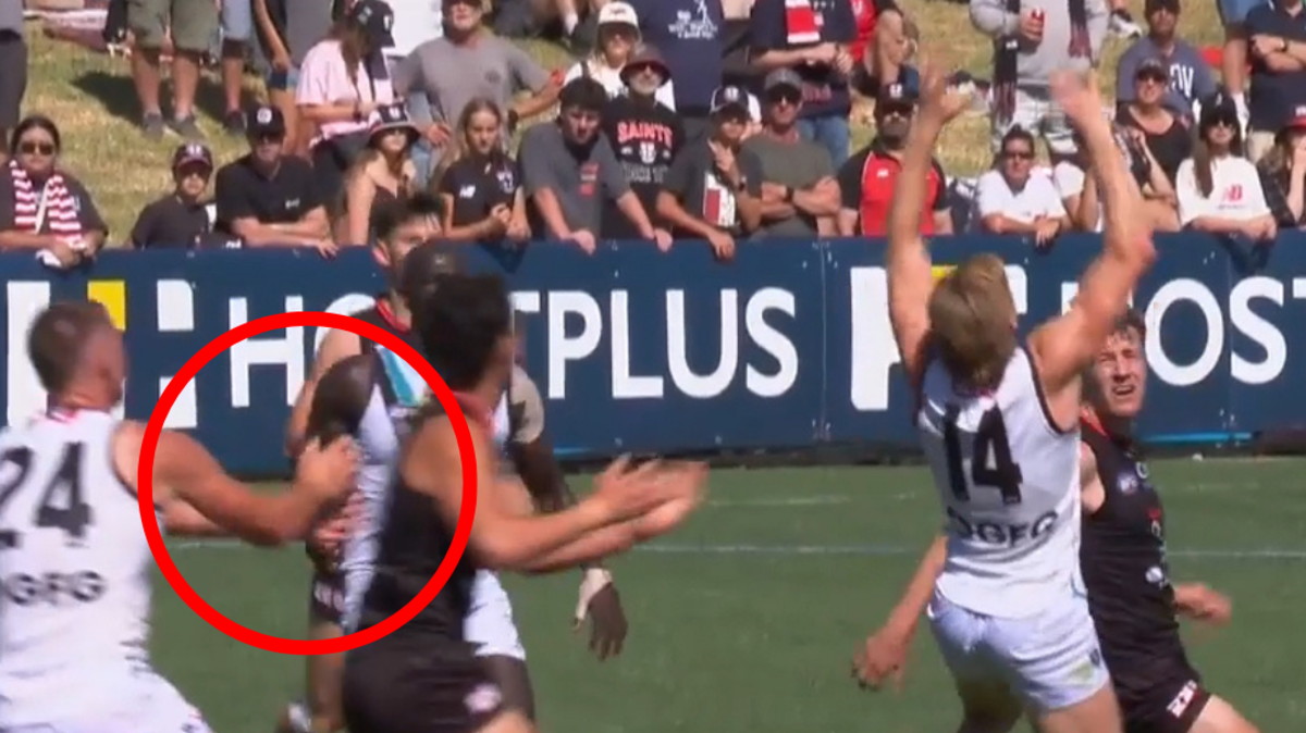 In yet another unfortunate incident during the AFL’s pre-season competition, St Kilda’s Mitch Owens sustained an injury after being pushed into a marking contest on Saturday.