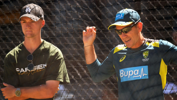 A younger Austin Waugh with former Australian coach Justin Langer. Getty