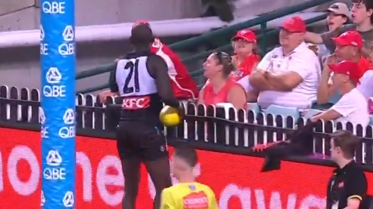 During the match, which saw Port Adelaide triumph over Sydney, Aliir marked the ball on the goal line, at which point the fan seemingly tossed a banner at the Power player from beyond the fence.