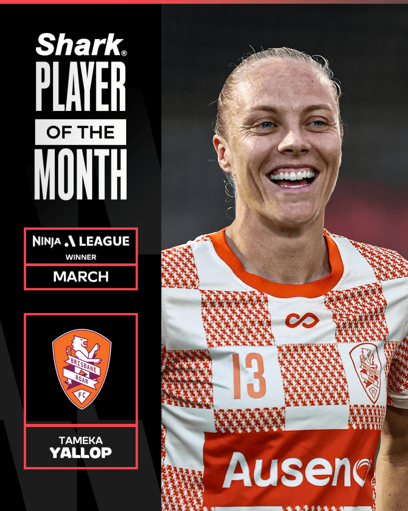 Brisbane Roar and CommBank Matildas sensation, Tameka Yallop, has earned the title of March Shark Player of the Month in the Ninja A-League following a popular fan vote.