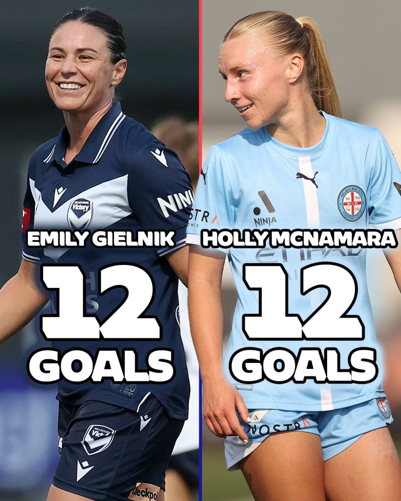 In the race for the Golden Boot, two CommBank Matildas are tied on 12 goals; City’s Holly McNamara and Victory’s Emily Gielnik will aim to outscore each other in the last two games, with additional goals possibly leading their teams to clinch the Premiership title.