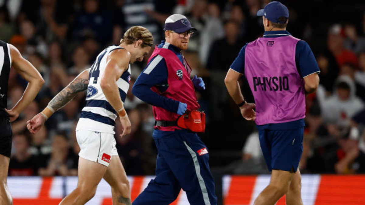 “He spent considerable time with the doctors and physios during that break for some run-throughs, and he still doesn’t look comfortable to me,” commented Cats legend Cameron Mooney on Fox Footy.