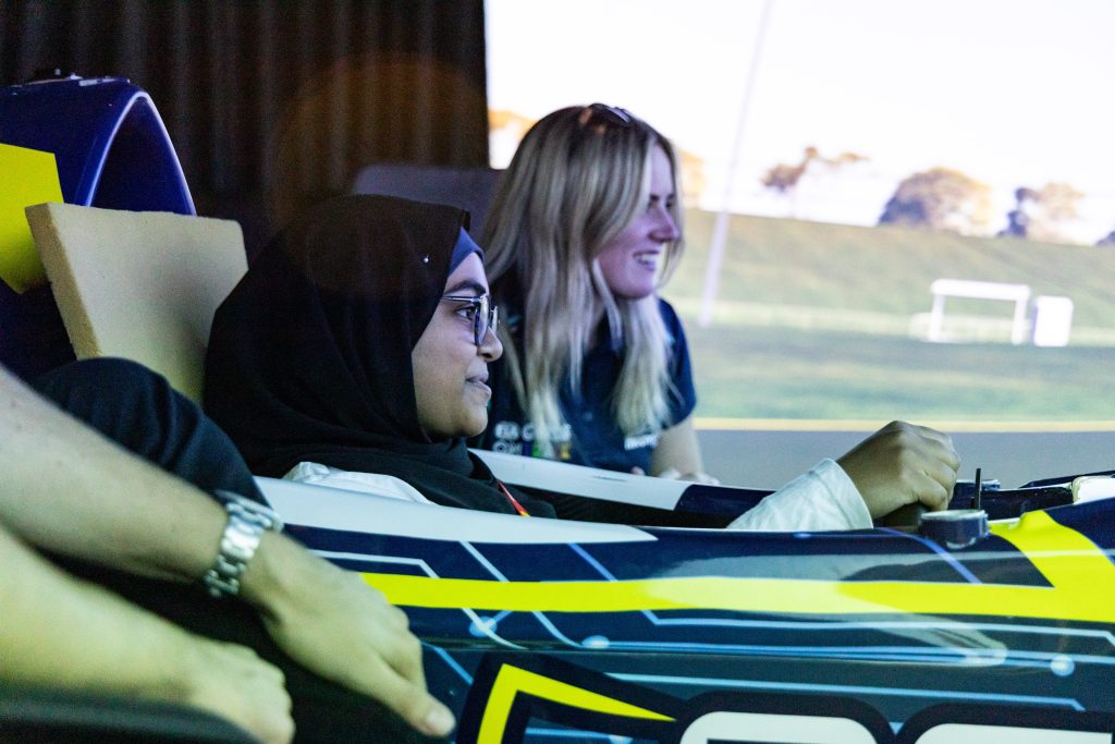 The day kicked off with the girls experiencing driving simulators at Focus Driver Performance, where they gained insight into what it’s like to be behind the wheel and learned about the integral role that data and engineering systems play in enhancing on-track performance.