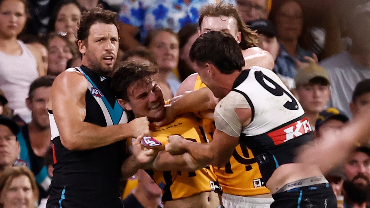 Port Adelaide has surged past Hawthorn in a match that has seen tensions flare at times.