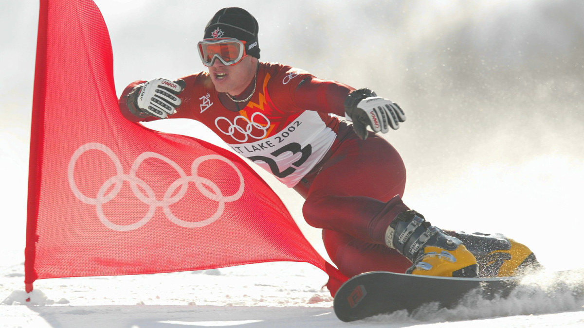 Ryan Wedding from Canada takes part in the qualifying round of the men’s parallel giant slalom snowboarding event at the Salt Lake City Winter Olympic Games. Getty