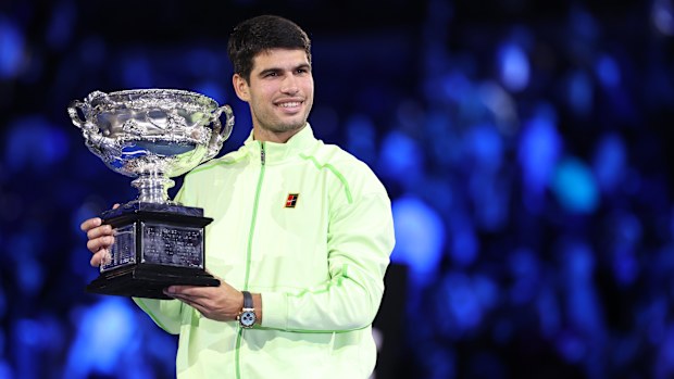 Carlos Alcaraz of Spain celebrating with the trophy after winning the 2026 Australian Open. Getty
