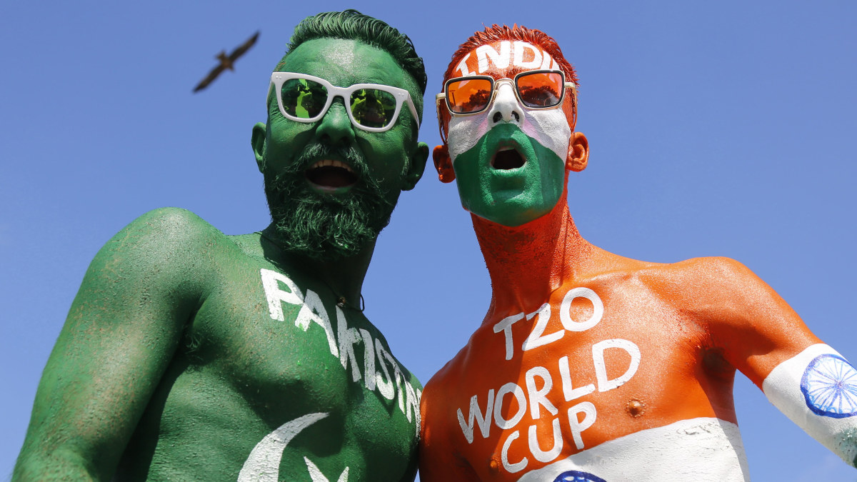 A Pakistani cricket fan (left) and an Indian supporter demonstrating their enthusiasm. AP