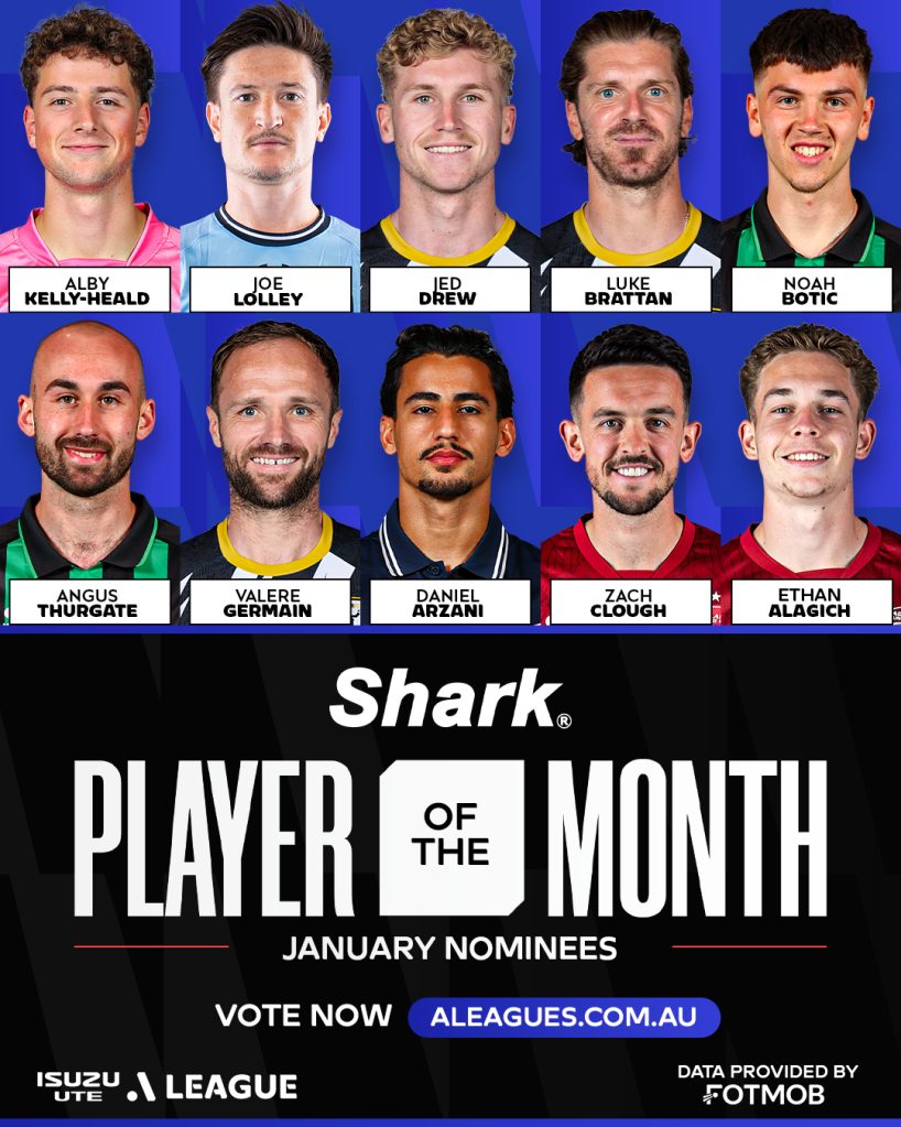 Throughout the 2024-25 Isuzu UTE A-League season, a selection of 10 players will be chosen each month for you, the supporters, to vote on for the coveted Shark Player of the Month accolade.