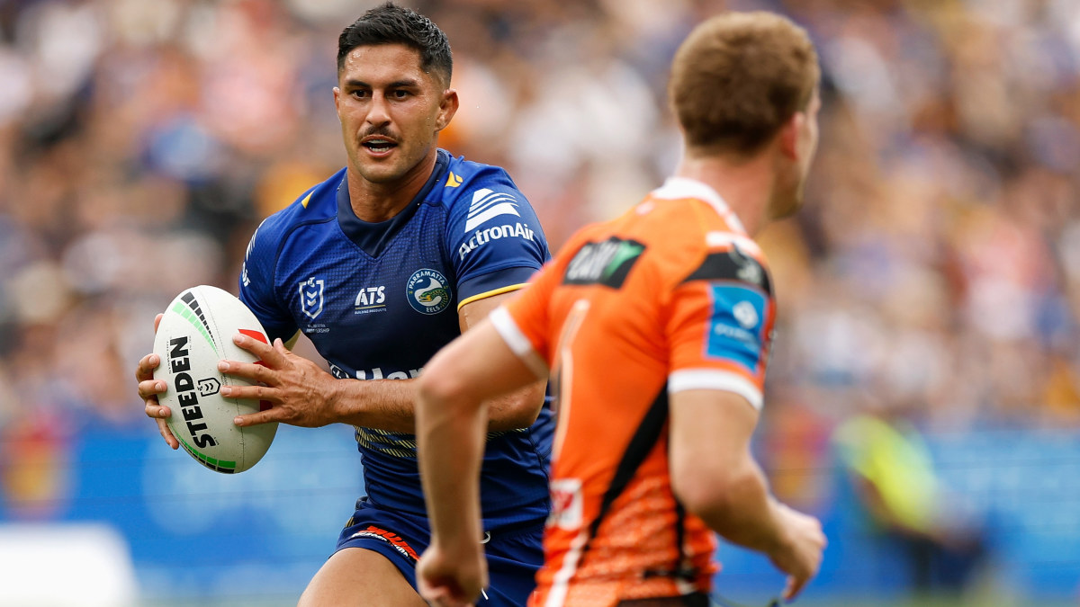Dylan Brown in action during the Eels’ match against the Wests Tigers. Getty