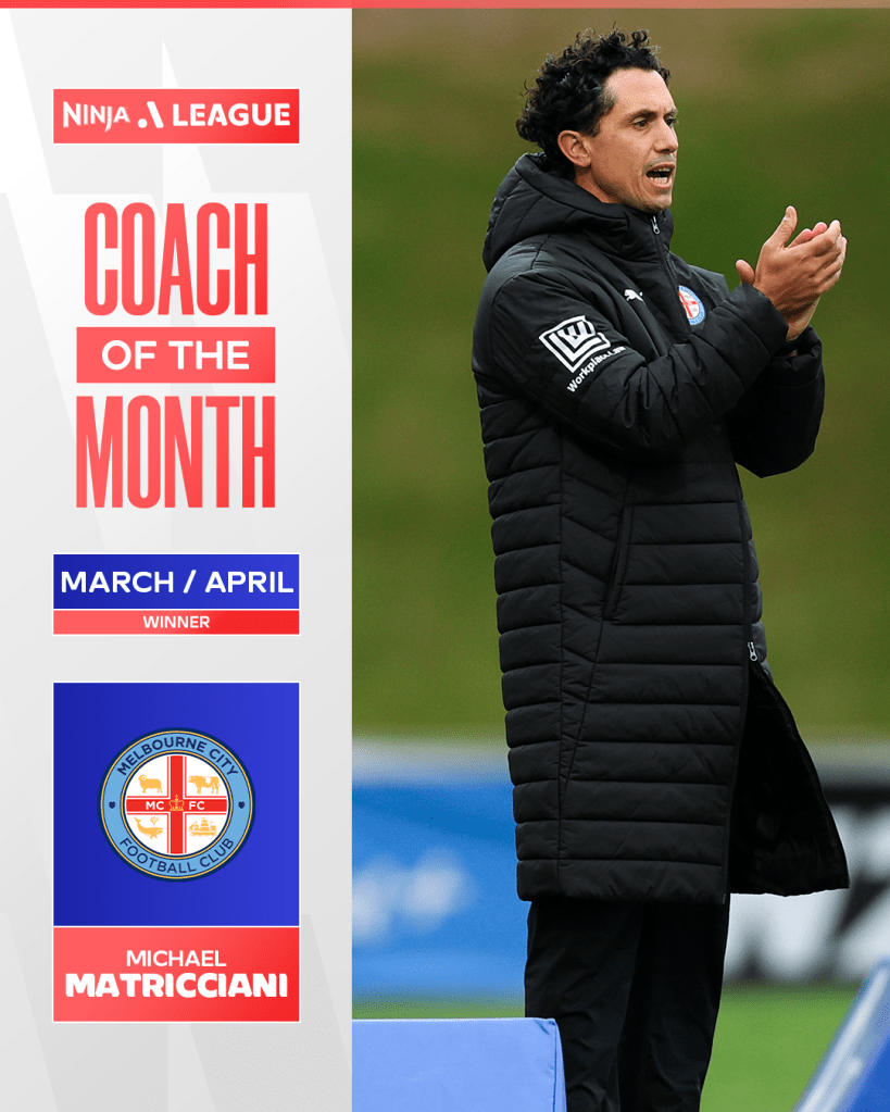 Melbourne City’s Head Coach Michael Matricciani has been recognised as the Coach of the Month for the Ninja A-League for March/April.