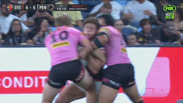 Isaiah Papali’i received a report for a high tackle. Fox League