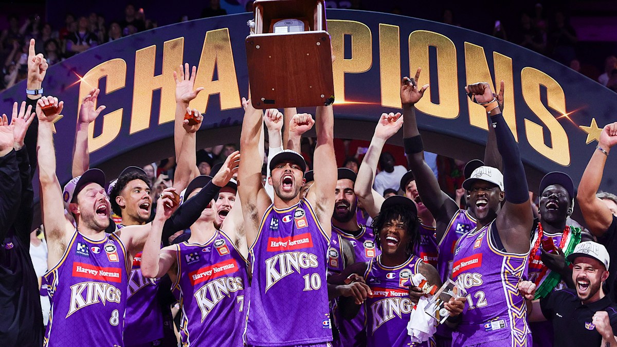 The Sydney Kings celebrate winning the NBL championship. Getty