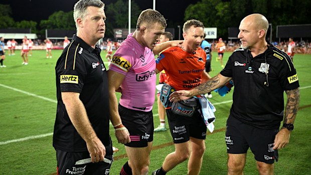 Marlee Silva from Nine reported on the seriousness of Kenny’s injury, with Johnathan Thurston noting he heard a “bang” as soon as Kenny tried to put weight on his leg.