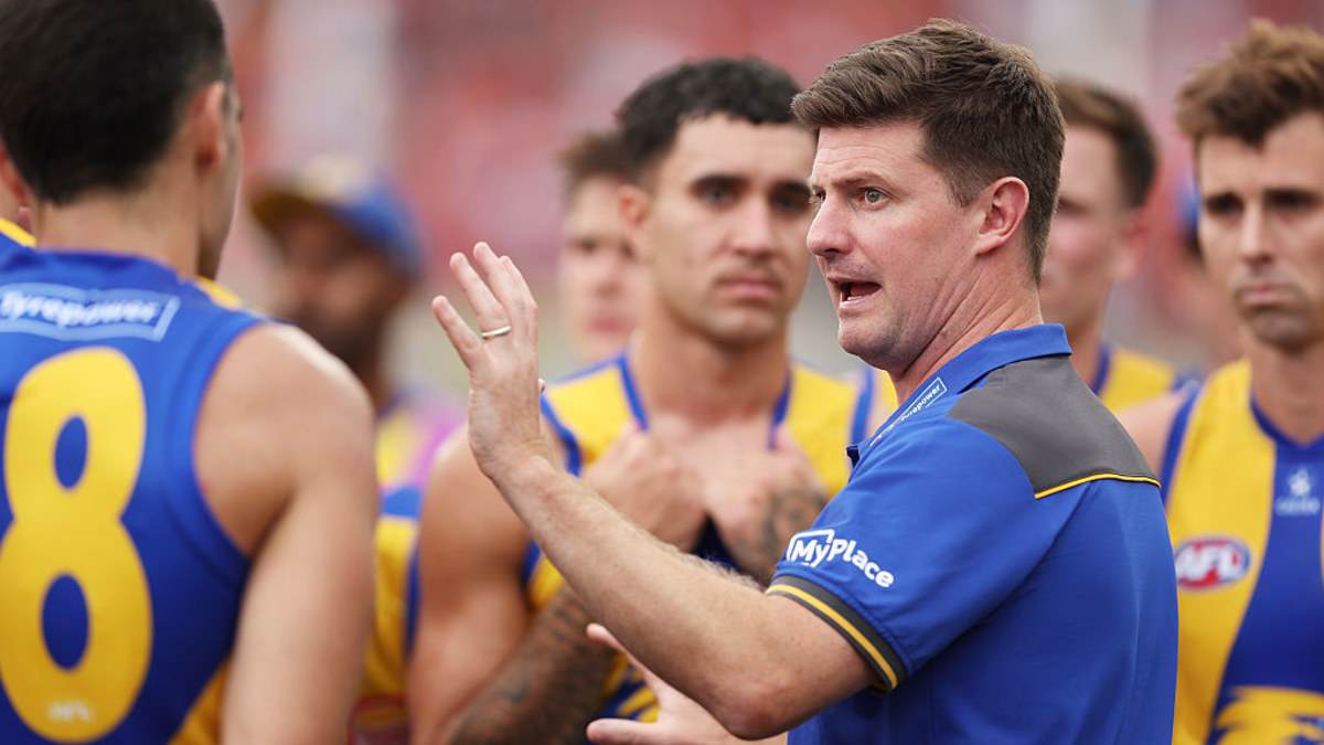 Eagles head coach Andrew McQualter addresses his players. via Getty Images