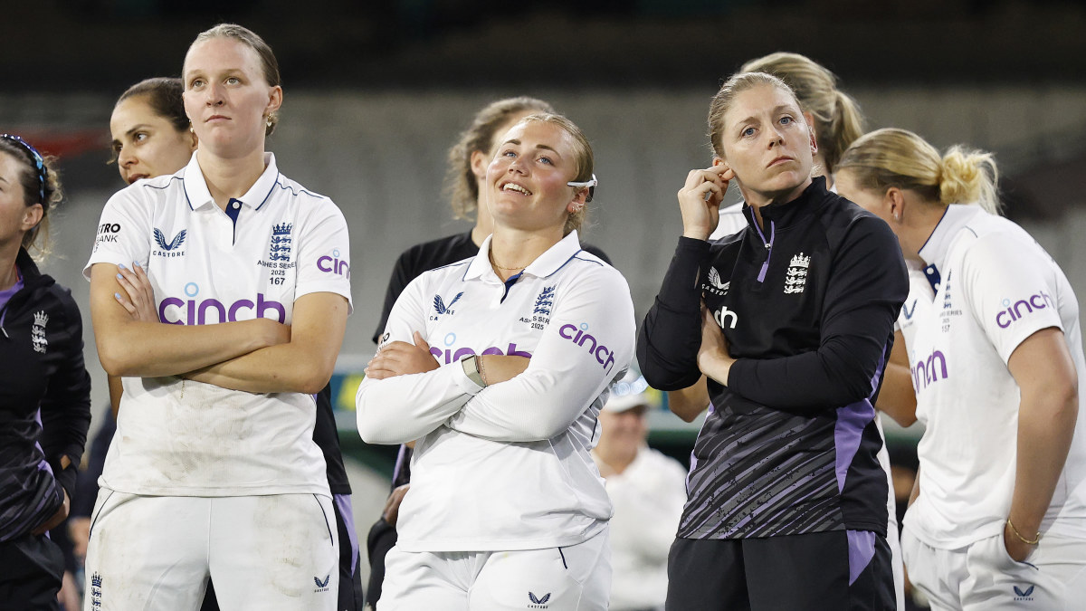 Heather Knight and her England teammates reflect on their Ashes defeat. Getty