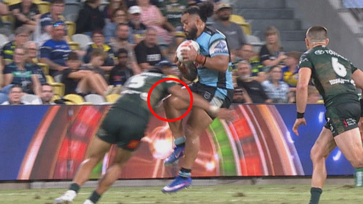 As the game between the Cowboys and the Sharks approached the last ten minutes in Townsville, Taulagi attempted to rush in from the wing while Cronulla advanced the ball deep into their opponents’ territory.