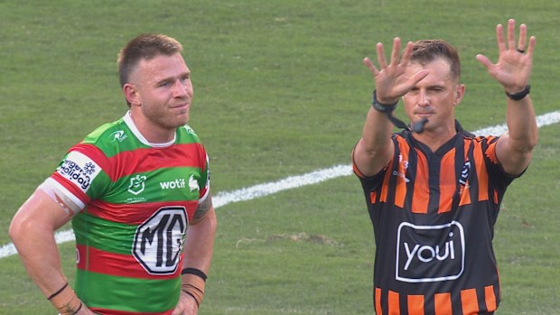 The match’s intensity escalated in the 29th minute as Kikau made high contact with Graham, resulting in the Rabbitohs centre needing medical attention for a cut above his eye.