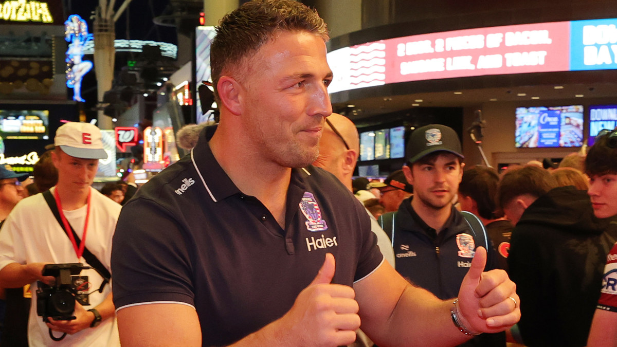 Warrington Wolves coach Sam Burgess greets fans during an NRL event at Fremont Street Experience on February 27, 2025 in Las Vegas, Nevada. (Photo by Ethan Miller/Getty Images) Getty