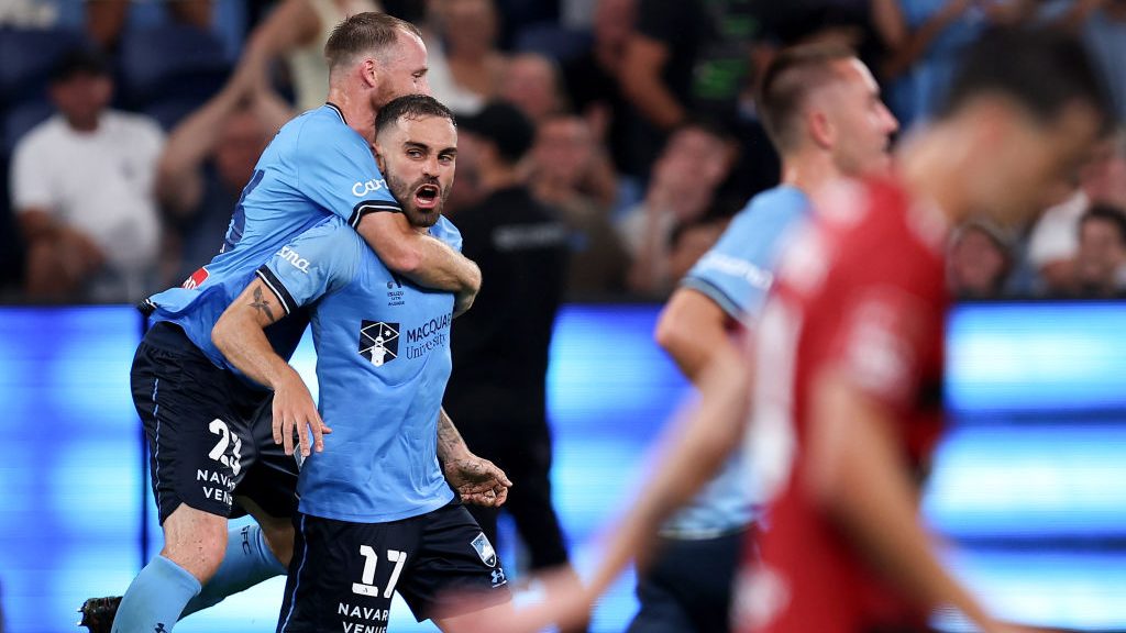 However, Sydney’s lead was short-lived. Sapsford capitalised after Sky Blues goalkeeper Harrison Devenish-Meares could only parry the ball right into the path of the Wanderers forward.