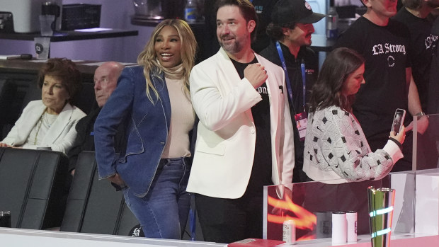 Serena Williams and her husband Alexis Ohanian during the TGL match. AP