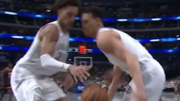 Dwight Powell made his way to the bench with blood running down his forehead as teammate Kessler Edwards lay flat on the court, clutching his head.