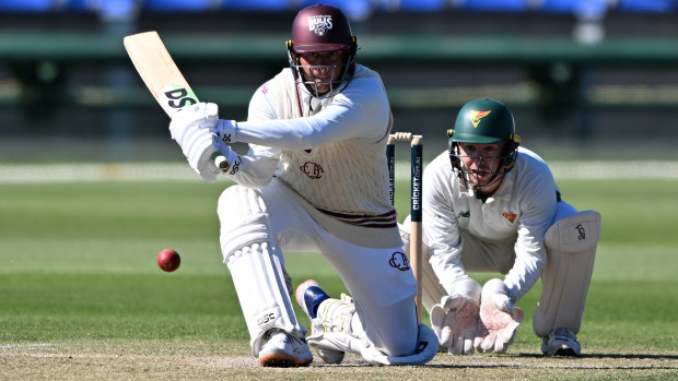 Usman Khawaja batting in the Sheffield Shield. Getty