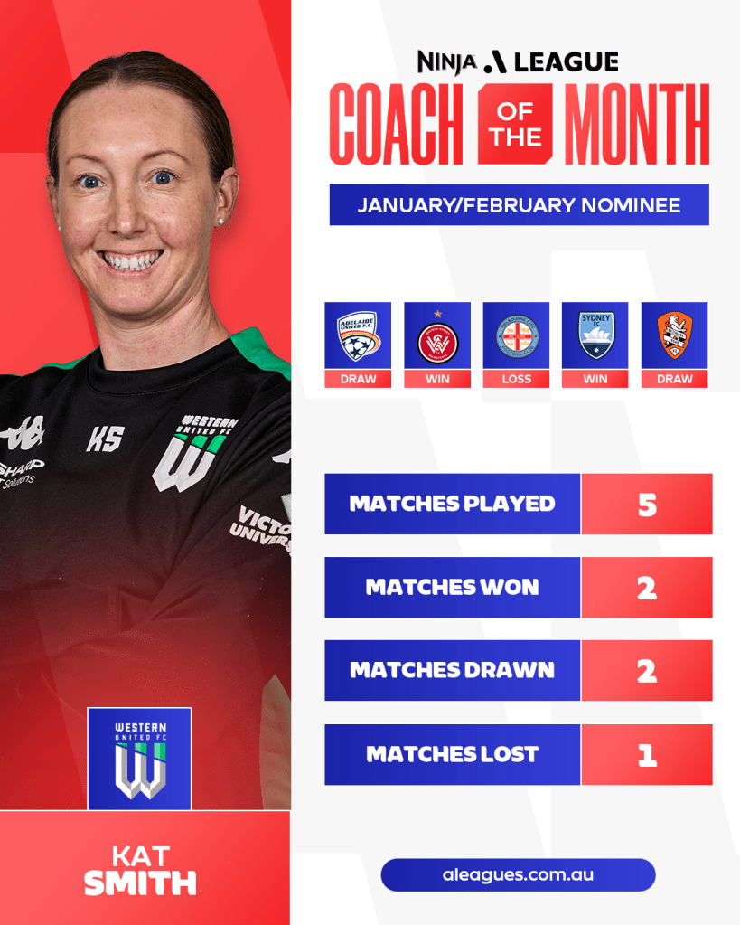 Home FootballAustralian Football League Women Western United’s Kat Smith Named January/February Coach of the Month Following Fan Voting