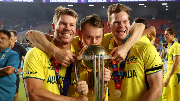 Steve Smith celebrating Australia’s 2023 World Cup victory. Getty