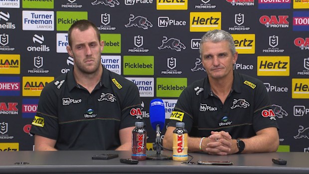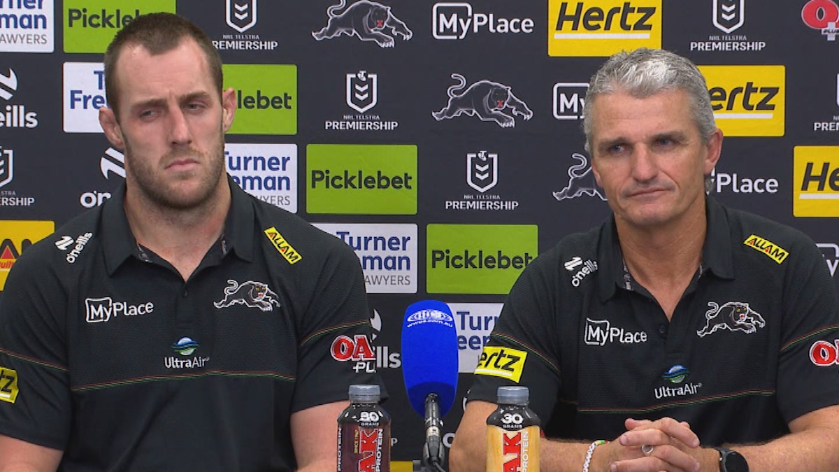 Ivan Cleary and Isaah Yeo address the media following round six. Nine