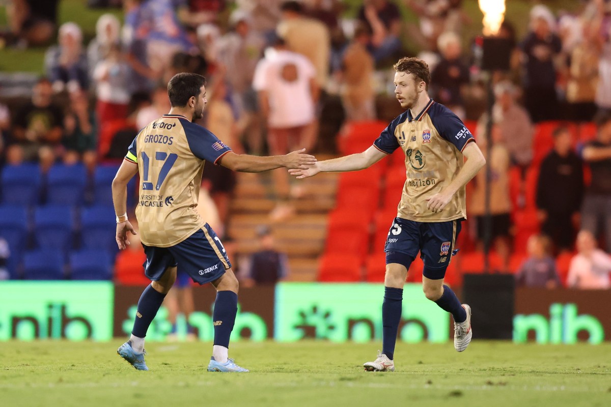 As the first half concluded quietly, Newcastle nearly took the lead when Zach Clough held possession in a congested penalty area and set up Xavier Bertoncello, whose shot grazed the outstretched leg of Ethan Alagic and hit the top of the near post.