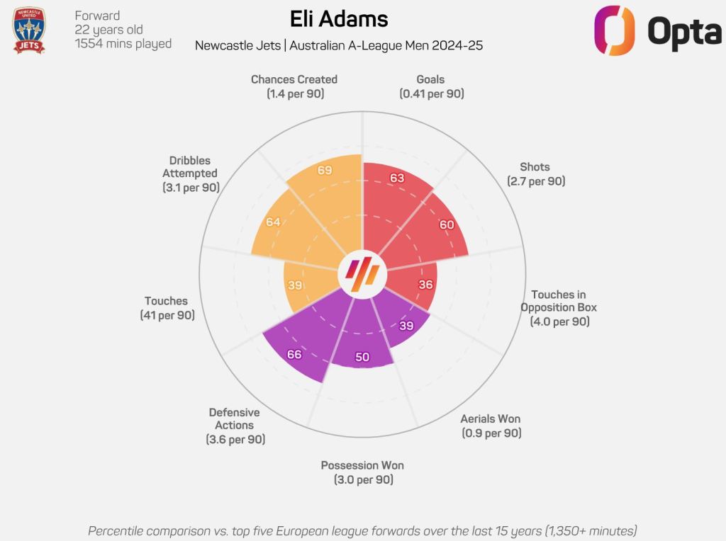 Eli Adams is truly finding his rhythm with the Newcastle Jets as he reaps the rewards of consistent first-team action. The latest insights into the promising forward highlight his impressive statistics.